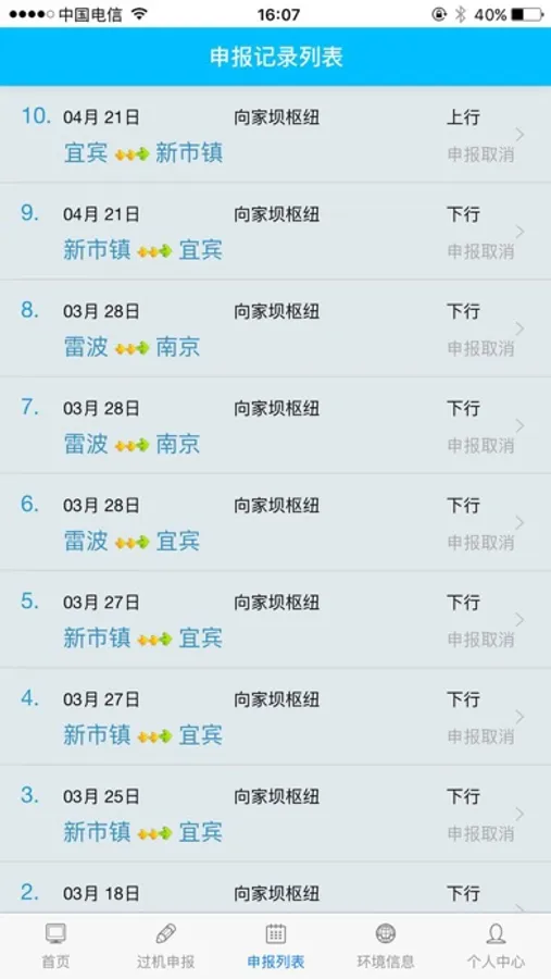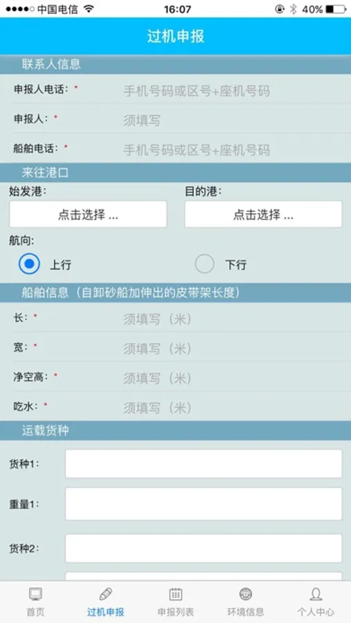 该应用用于向家坝升船机用户过机申报使用,用户使用之前,需要将船舶资料交给升船机人员进行入库,入库完成后,用户进行注册登录,若库中有匹配记录,由升船机人员手动绑定。