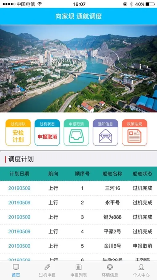 该应用主要用于申报,可查看当地水位,气象,流量等,还可以查询当天的安检计划,以及制度法规在线预览