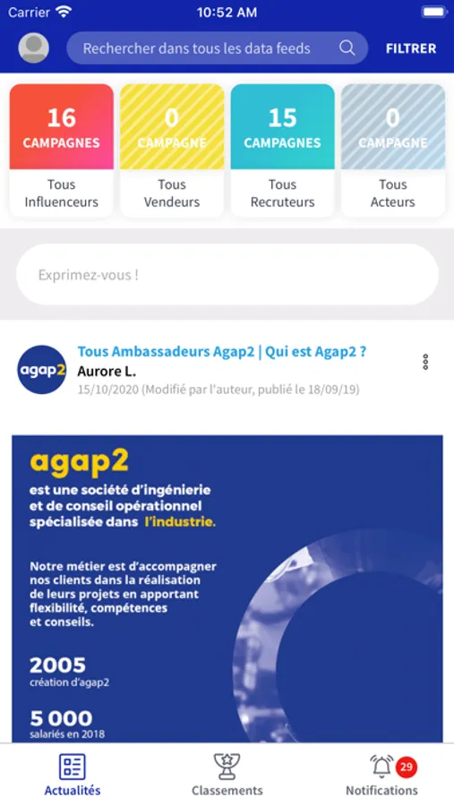 Grâce à l'application TousAgap2, suivez les actualités de l'entreprise, découvrez les offres de recrutement du moment et plus encore.
