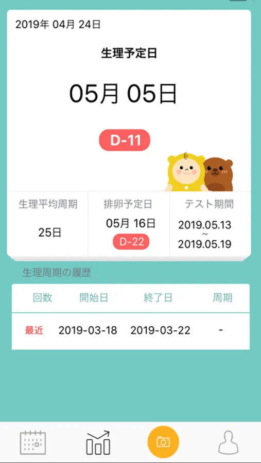 -APP can display next menstruation expectation date and ovulation day only by setting latest physiological day and menstrual cycle.