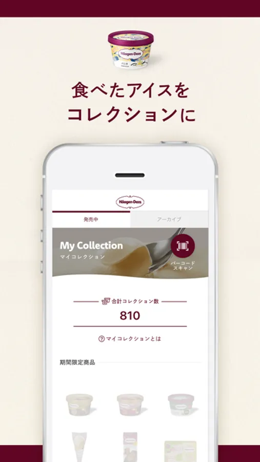食べた商品のバーコードをスキャンして、自分だけのコレクションを作成することができます。