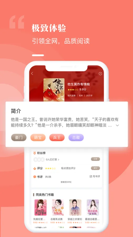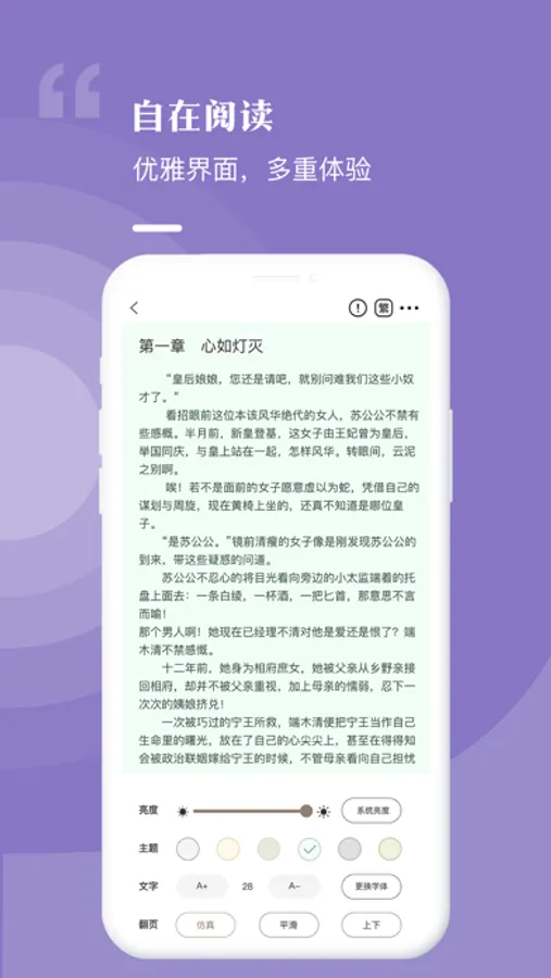 【优质体验】翻页流畅,排版精美,多种背景字体任意切换,带你畅享极致的阅读体验。