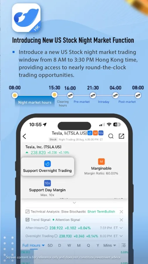 No matter day or night, you can trade US stocks across time zones, without staying up all night for trading stocks, and you can have a good night's sleep even when focusing on investment!