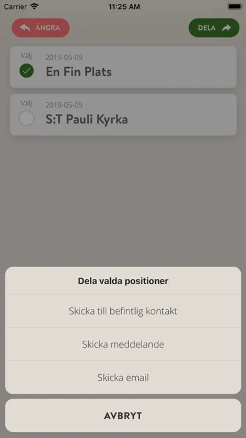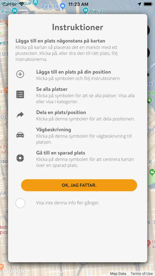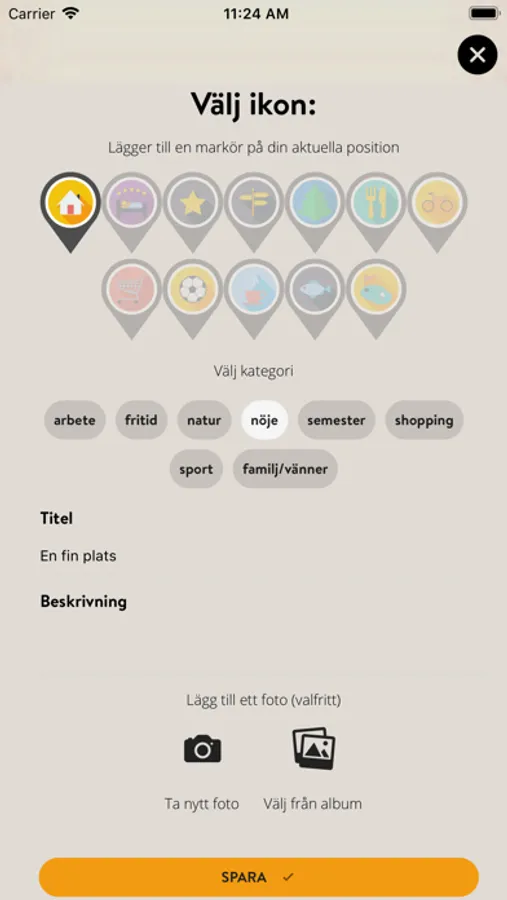 - Välja mellan olika ikoner för att lättare kunna särskilja platserna på kartan.