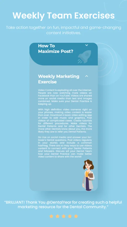 Created by marketers, this resourceful platform helps your Dental Practice in a variety of ways. Content Inspiration, Real-Time Marketing Ideas, Tips on ROI with your current methods, Fresh Resources, and lots more! If you’re looking for more reach, engagement and conversion with your DENTAL PRACTICE MARKETING, download the DentalYear App today!