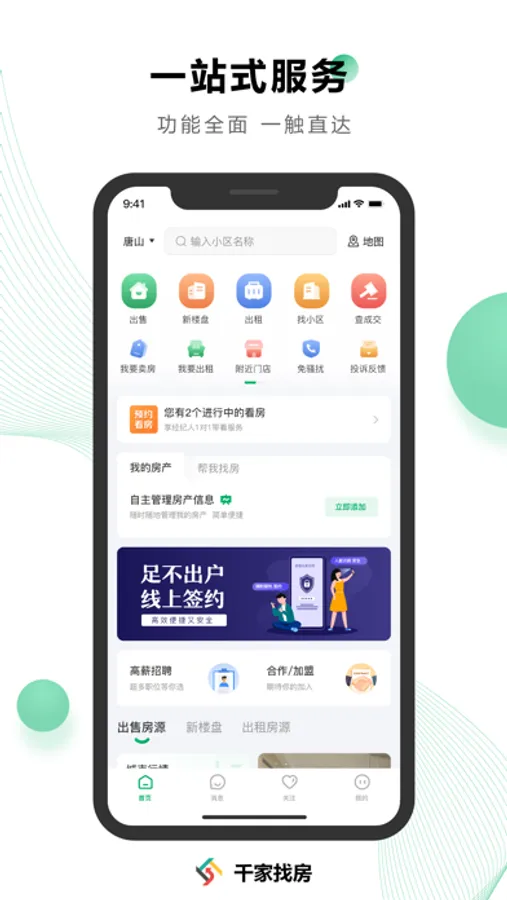 千家找房,专业的二手房、新房买卖租赁大平台,提供海量真实房源信息。打破信息壁垒,为您提供市场行情分析、房源成交历史、带看历史,并告知您关注的房源、小区信息动态,让您不错过好房源!