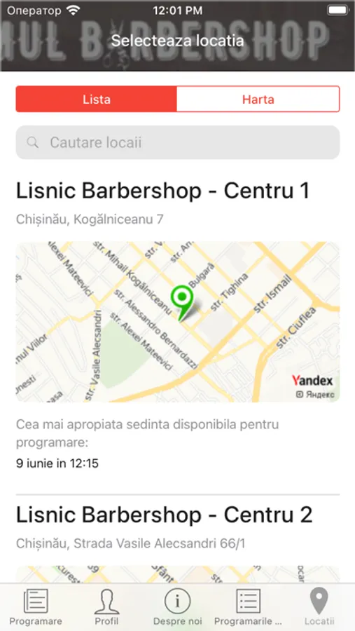 Aplicația "Lisnic Barbershop" oferă un mod simplu de a te programa și te ajută să economisești timp. Alege filiala cea mai apropiată de tine, serviciul, meșterul, data și ora convenabilă.