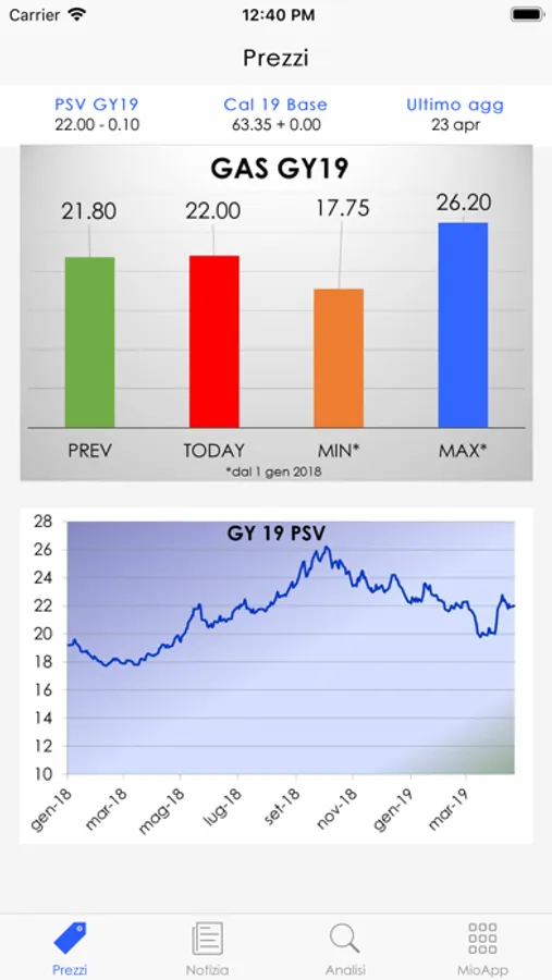 consultare i prezzi italiani del gas e dell’elettricità per l’anno successivo e relativi grafici aggiornati quotidianamente