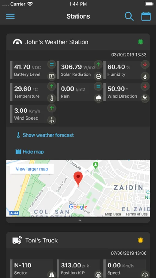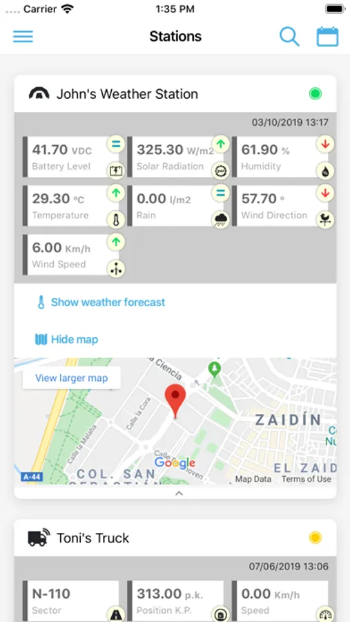 With Nazaríes IoT App you can easily track all the data of your devices. You can generate graphs and check the forecast weather too.