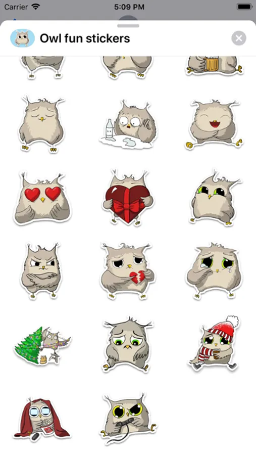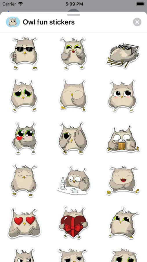 More than 20 stickers for iMessage with a cute owl!