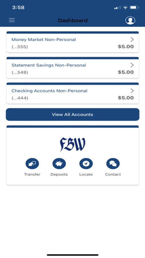 * Transfer funds between accounts and to other FBW customers