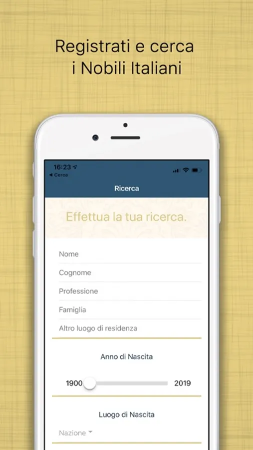 • Potrà inserire i propri dati, farsi trovare e cercare gli altri nobili italiani per città, cognome e anno di nascita!