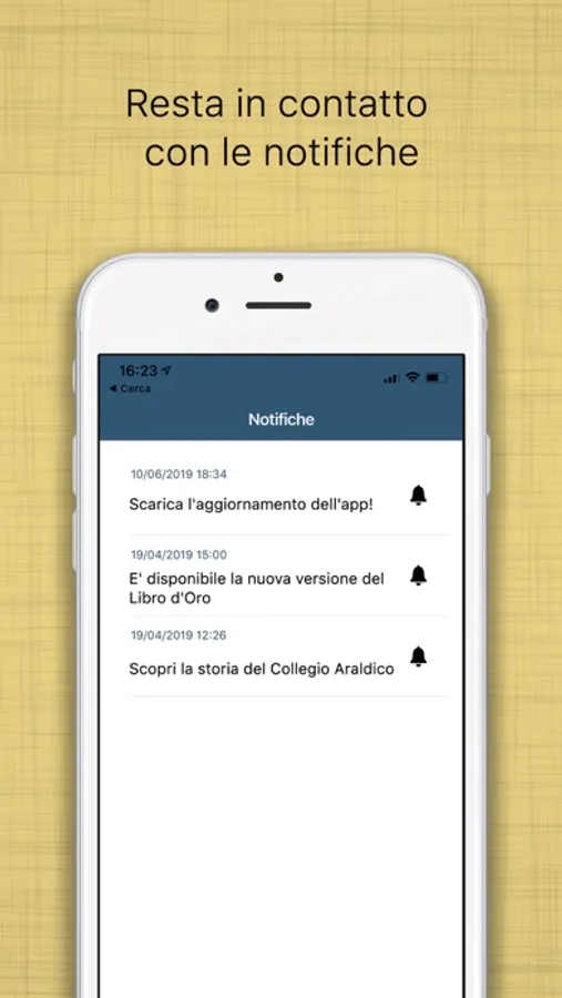 • Inoltre, riceverà tutte le notifiche inviate da Libro d’Oro e rimarrà così sempre aggiornato su tutte le novità e le iniziative del Collegio Araldico!
