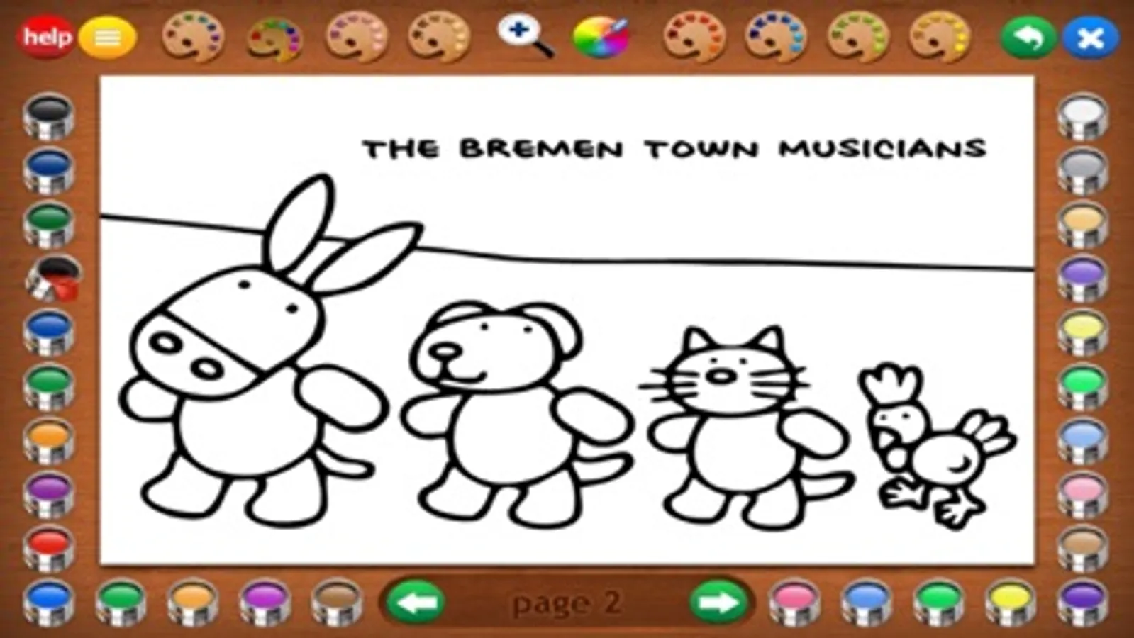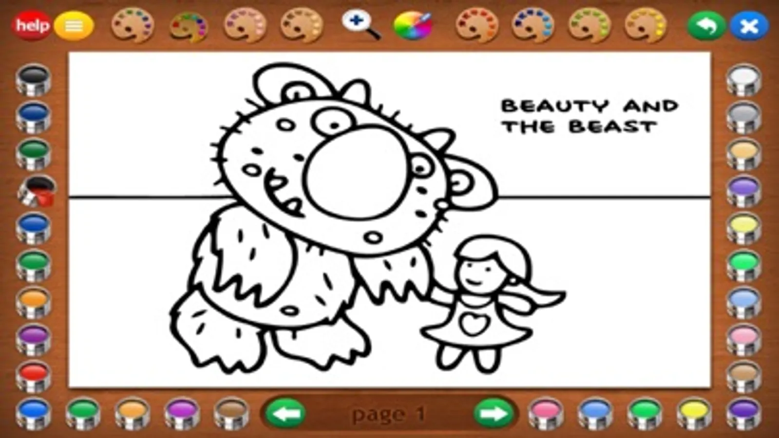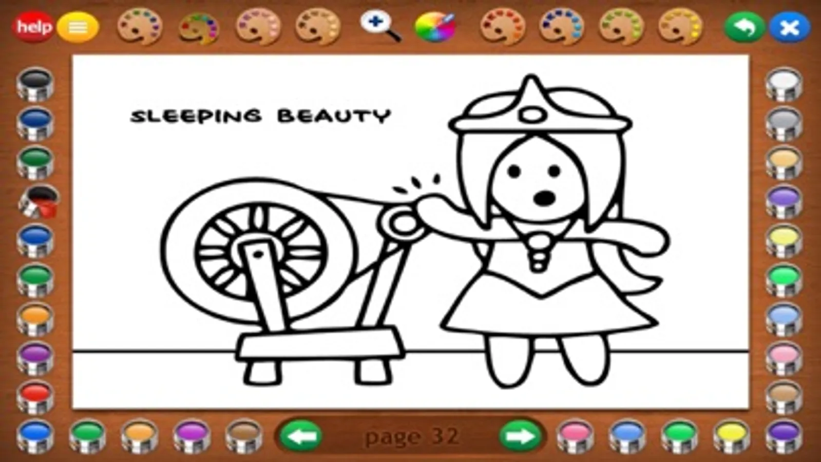 Characters and scenes from your favorite fairy tales! The 50 pages included these fairy tales: Beauty and the Beast, Cinderella, Goldilocks and the Three Bears, Hansel and Gretel, Jack and the Beanstalk, The Little Mermaid, Little Red Riding Hood, Pinocchio, Puss in Boots, Rapunzel, Rumpelstilzchen, Sleeping Beauty, Snow White, The Bremen Town Musicians, The Elves and the Shoemaker, The Emperor's New Clothes, The Gingerbread Man, The Princess and the Pea, The Three Billy Goats Gruff, The Three Little Pigs, The Tortoise and the Hare, The Twelve Dancing Princesses, The Ugly Duckling, Thumbelina, and Tom Thumb.