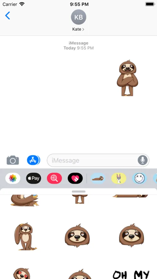 - after that, you can send stickers in empty iMessage messages, as well as add stickers to your already sent and other people's messages. To do this, press and hold the selected sticker and drag it to the message. You can, put several stickers on one message at once, and also use the message appearance effects in iMessage.