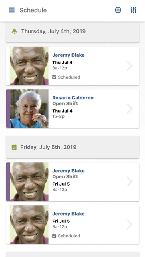 SMARTcare's role-based point-of care application allows caregivers to clock in and clock out of shifts, access their schedule, request time off, request to work specific times or shifts, manage their workflow, complete assigned care tasks, indicating service level upon completion, record care notes, file mileage and expense reimbursement requests, download important documents and store them safely within the app, and communicate in a HIPAA-compliant environment with agency office staff. Schedulers use the application to approve or deny time-off requests and shift-fulfillment requests, match clients and caregivers, set up and manage shifts, communicate securely with other staff and clients, and much more.