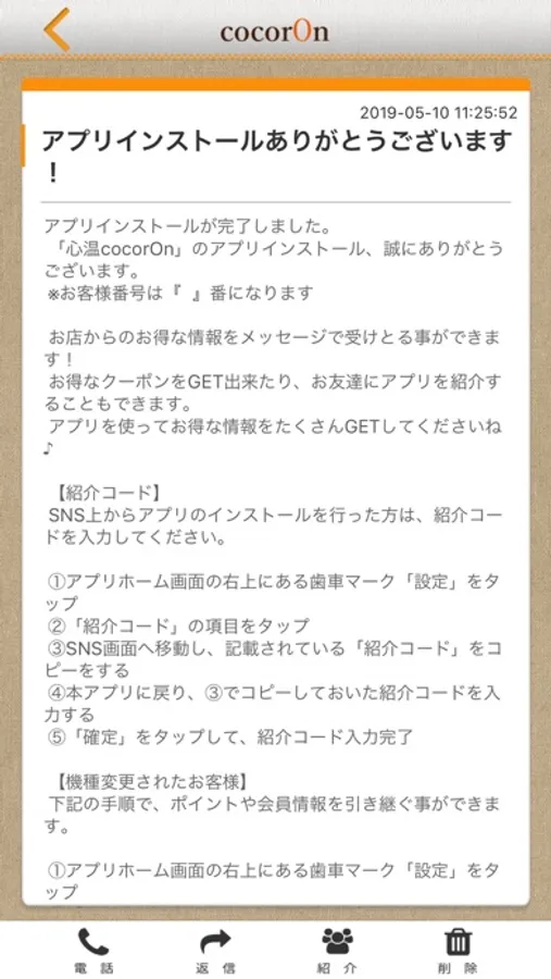 cocorOnのアプリをSNSを通じてお友達に紹介する事ができます。