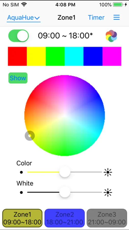 The AquaHue App controls the AquaHue LED aquarium light (manufactured by Yalumi Corp.) through Bluetooth connection. The latest version is 3.0.