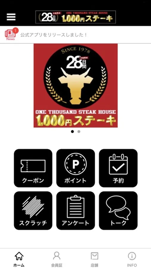 お店の最新情報をお届け/お店でもらえる利用ポイント/アプリ会員証やクーポンでアプリ会員限定の特典を ゲット/現在地から近くのお店をナビでご案内