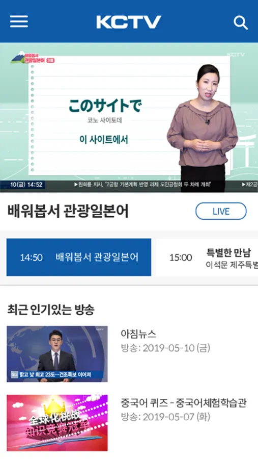 KCTV 제주방송의 뉴스를 포함한 모든 지역프로그램 등 원하는 시간에 원하는 방송을 시청하실 수 있습니다.