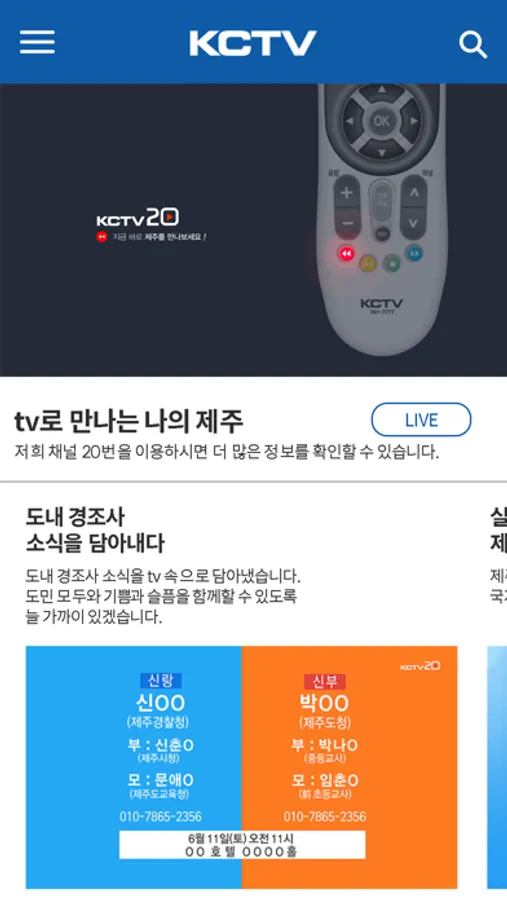24시간 KCTV 제주방송의 생방송과 뉴스를 여러분에게 전해 드립니다.