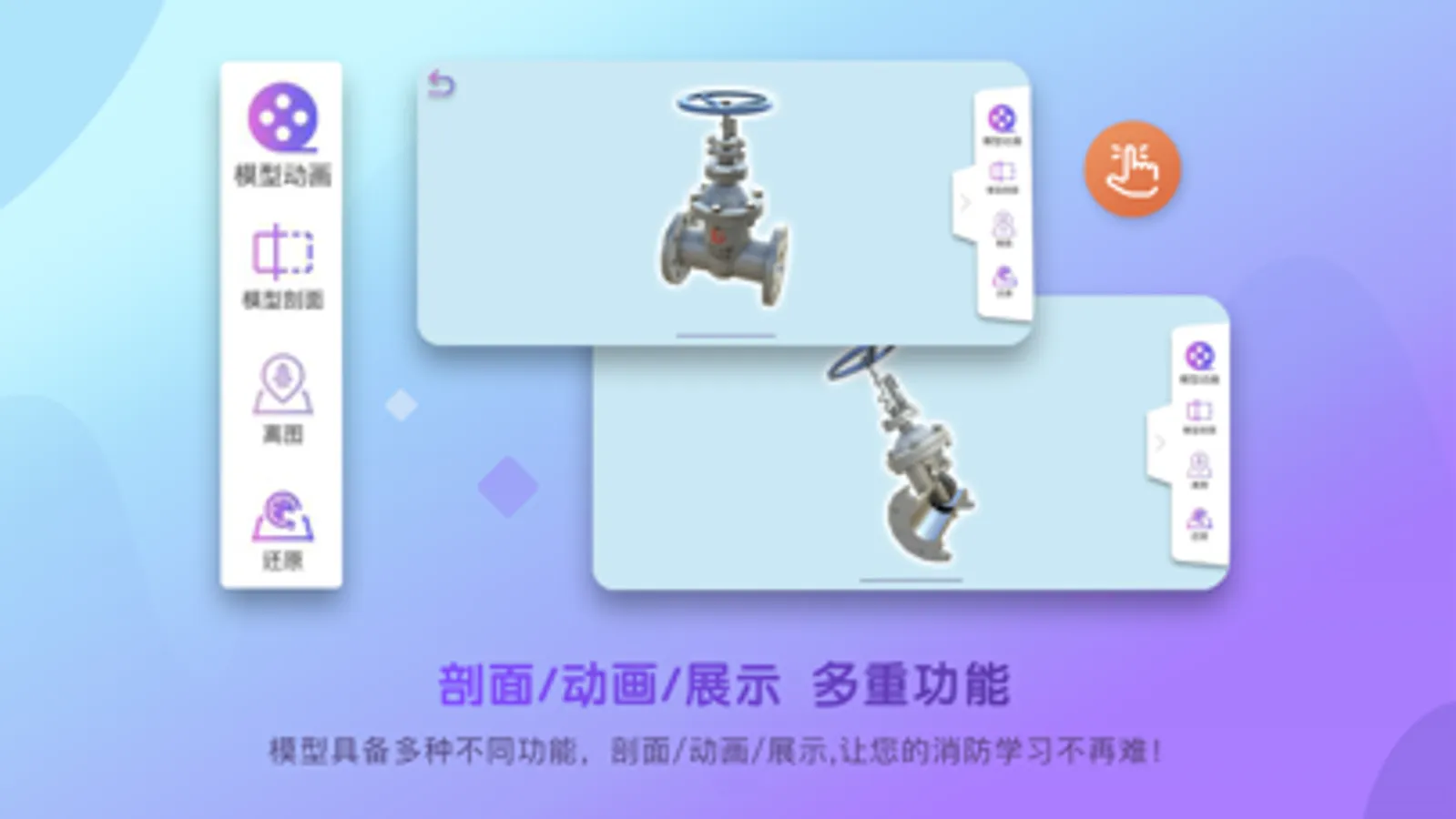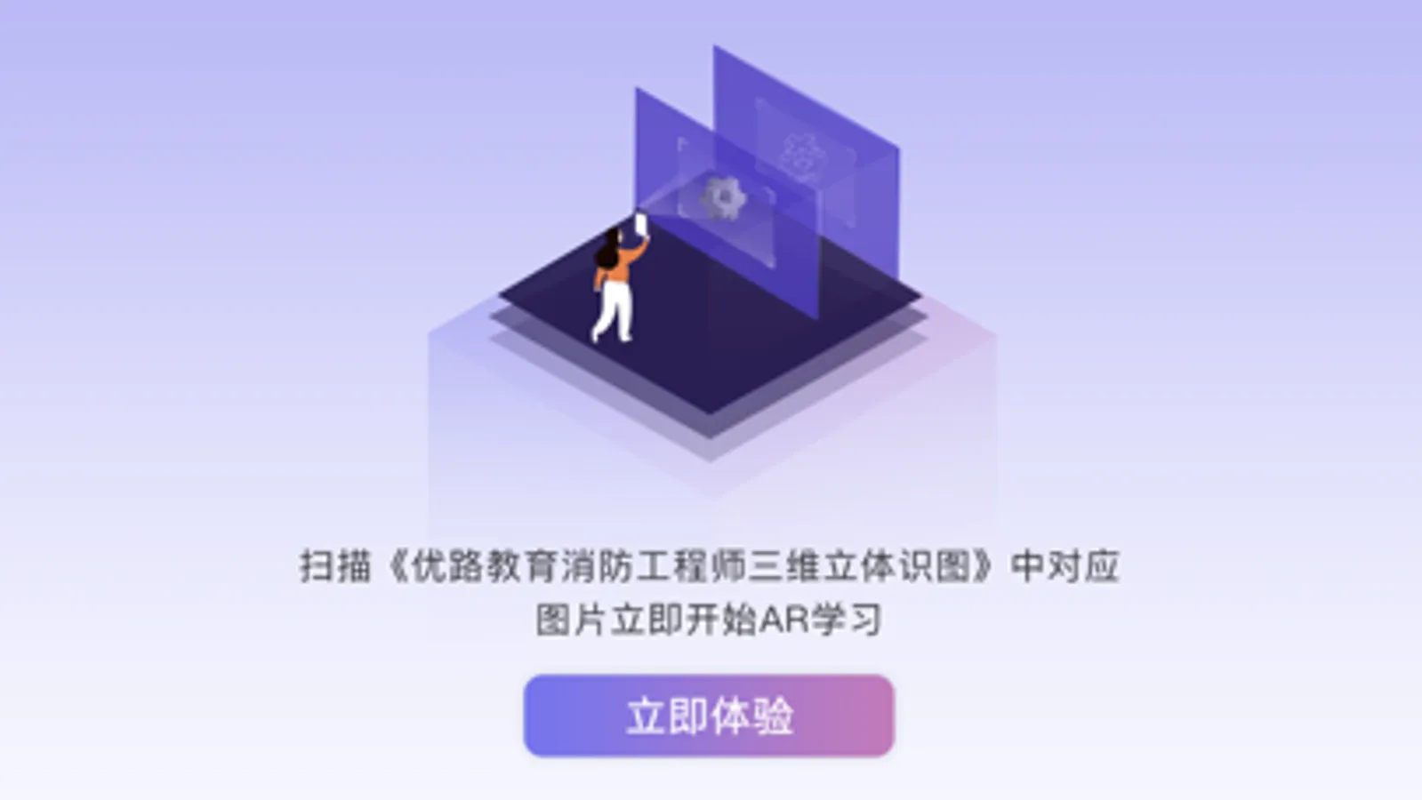 “优路消防AR”是由优路教育技术团队研发,结合实体书籍《消防工程师三维立体识图》配合使用的学习工具软件。扫描书本图片即可出现精细化模型。“优路消防AR”具有丰富的AR内容,人性化的交互体验。模型包括多种不同的功能。让消防考生的消防学习不再难。