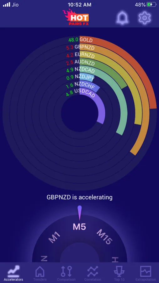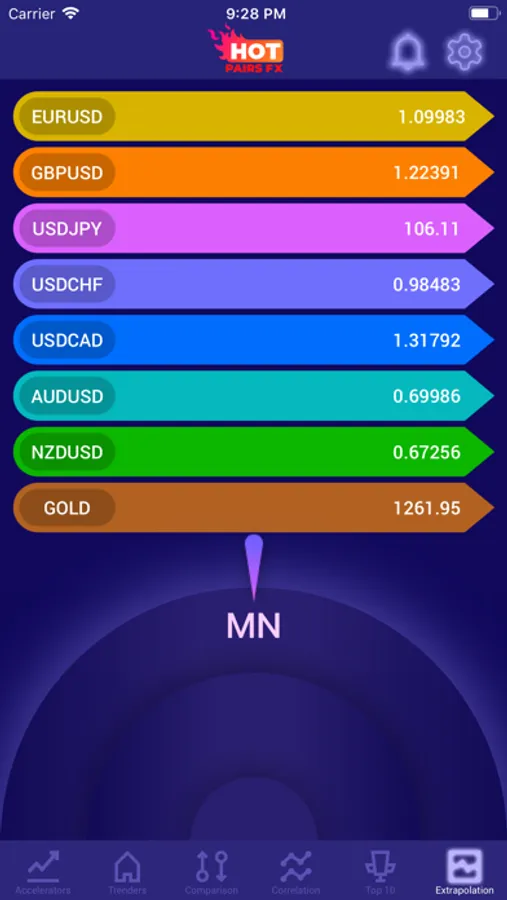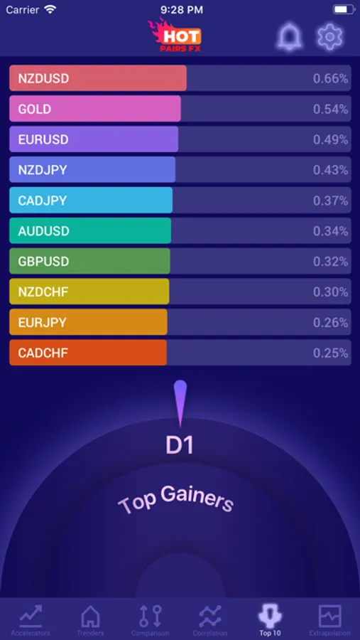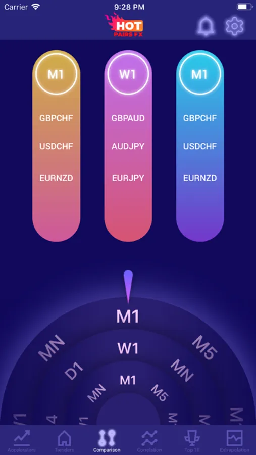 Comparison - This screen presents the comparison of top hot trending pairs between 3 timeframes that make the most noise in the currency markets at the given moment. This helps the traders determine which currency pair to put their money into when trading.