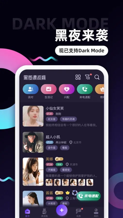 黑夜漂流瓶-附近陌生人交友约会 Screenshots