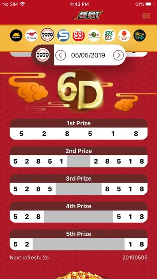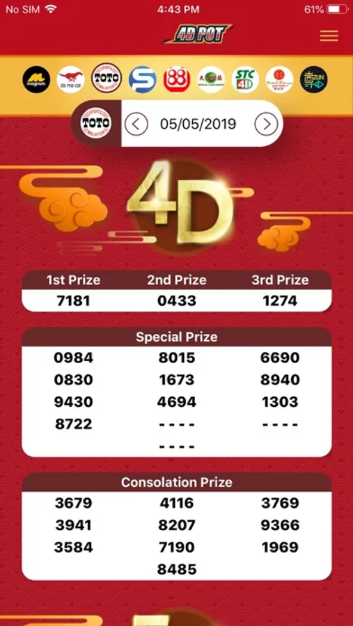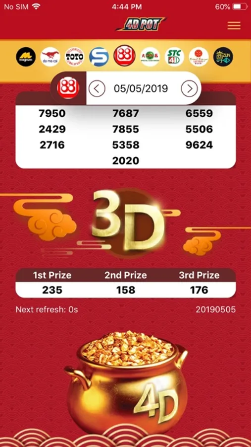 4D POT is a light & free app that provides all 4D LIVE results in Malaysia, Singapore and Cambodia. While we are striving to deliver real-time and timely result, we are also obsessing about the accuracy and perfection of the result. All results are audited internally and correction is made as soon as the mistake is found. Currently we support real-time results for Magnum, Sports Toto, PMP (Damacai), Sandakan Turf Club(STC), Sabah 88, Special Cash Sweep(Sarawak), Singapore Pools, Grand Dragon Lotto and Zun 4D.