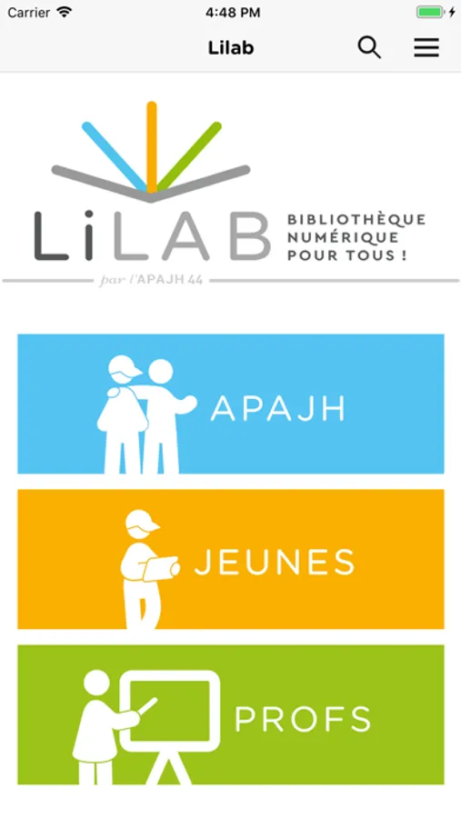 Lilab est une bibliothèque numérique proposée par l’Association Pour Adultes et Jeunes Handicapés de Loire-Atlantique (APAJH 44) et adaptée aux besoins de chaque jeune utilisateur. On y trouve des livres de littérature jeunesse avec des outils diversifiés d’aide à la lecture. Cette bibliothèque présente trois entrées : APAJH, lecture rééducative, Jeunes, lecture plaisir, Profs, lecture scolaire.
