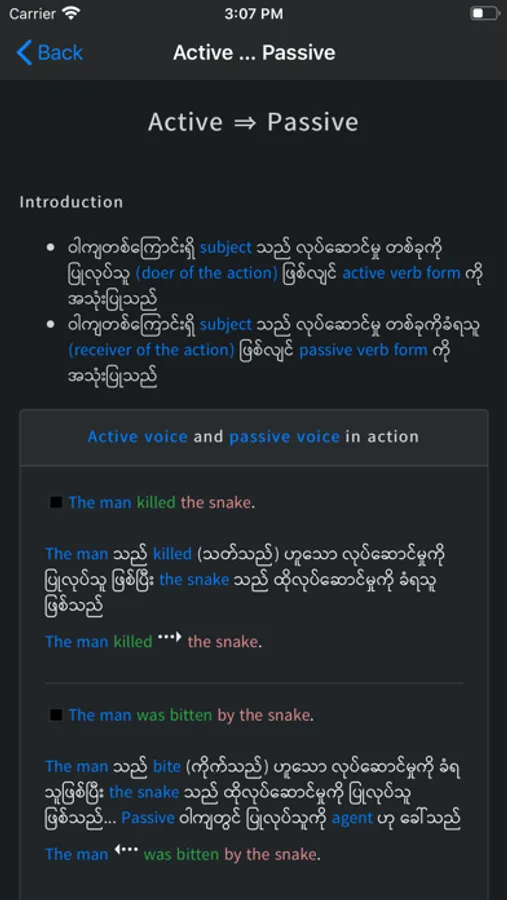 This app helps ease the pain by showing rules to remember and more importantly, it shows example sentences.
