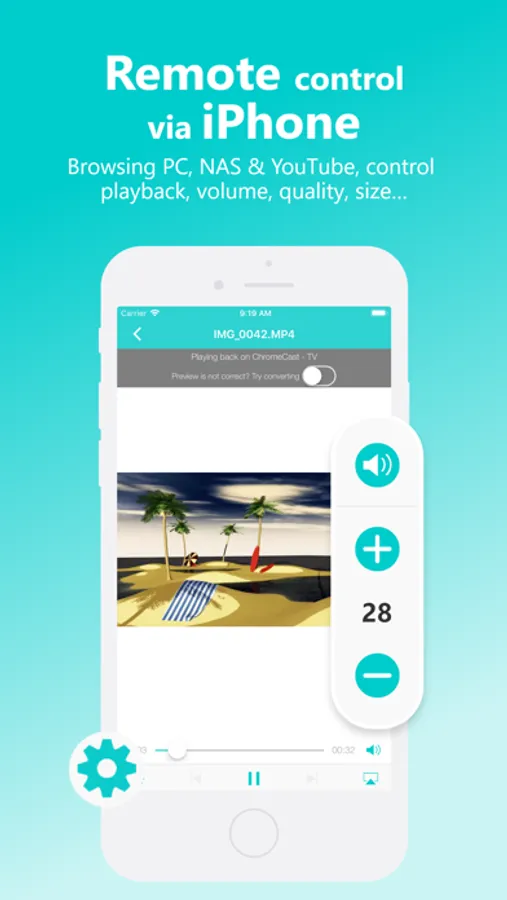 - Use your iPhone/iPad as remote control while casting videos & music: regulate the volume, pause, stop or skip titles!