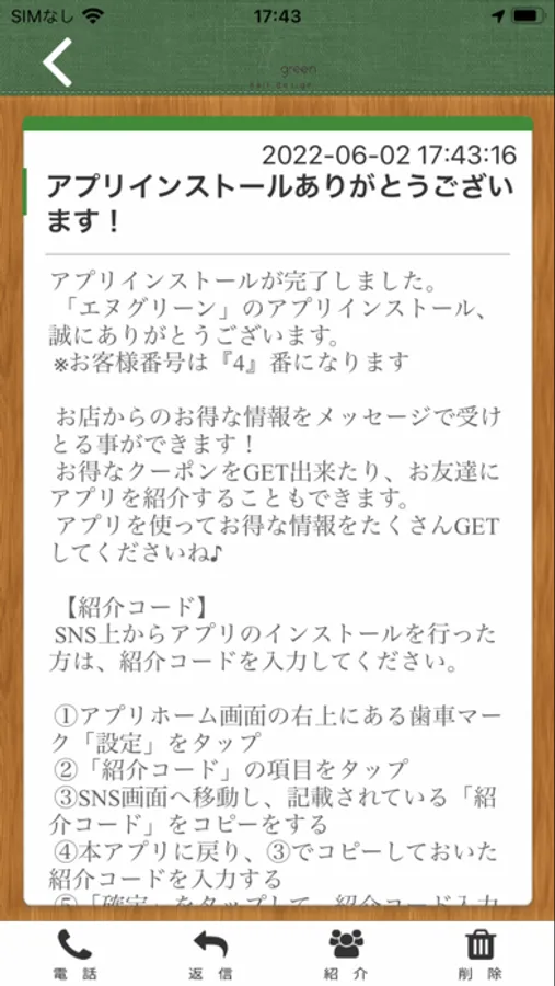 N greenのアプリをSNSを通じてお友達に紹介する事ができます。