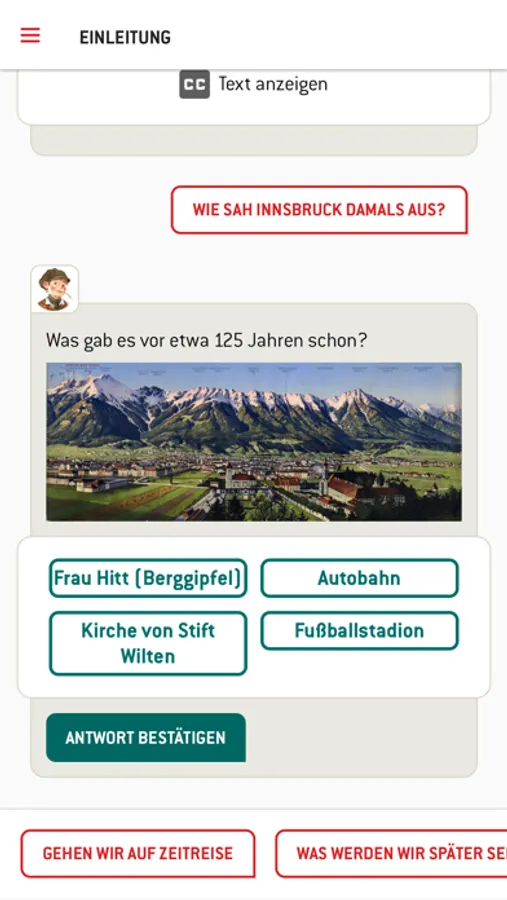 Wer war Andreas Hofer und wo war er bei den Bergiselkämpfen wirklich? Wie lange hat es gedauert, ein 1000 Quadratmeter großes Gemälde zu malen? Auf unterhaltsame Weise klären Fritz, Jule und Sarah in der App viele spannende Fragen. Wer sie ins Riesenrundgemälde oder ins Kaiserjägermuseum begleitet, kann auch selbst Fragen wählen – und mit der Vergangenheit chatten. Im Schauplatz Tirol stellt die App Kinder und Erwachsene vor knifflige Rätsel.