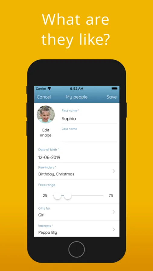 * Create profiles of people you don’t want to forget about. Create new profiles or select from contacts.