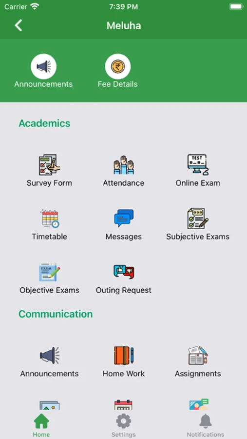 Meluha Parent Portal Provides communication app for parents using which they can download school announcements,class assignments, can see attendance and activity.