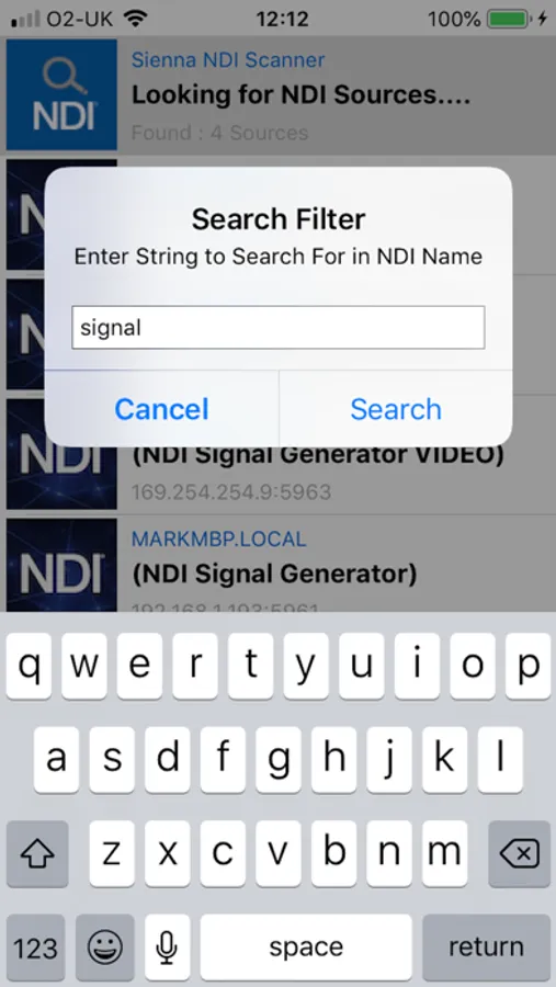 Selecting a source also offers the option to open that source in Sienna NDI Monitor for iOS (if installed).