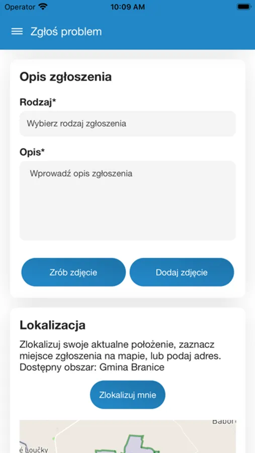 Aplikacja w bardzo prosty sposób pozwala na zgłaszanie różnych problemów czy usterek.