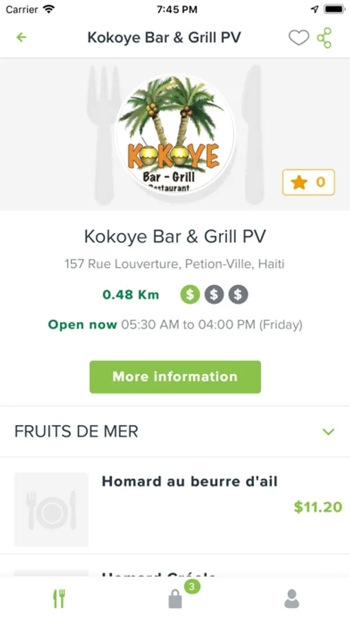 Grab-it helps find restaurants and food around Port-au-Prince (Pétion-ville, Delmas, Route de Frère, etc…). Furthermore, users allow you to give or read other people’s reviews about restaurants or food in order to make better decisions. Grab-it is also very easy to use. Less keyboard more touch! With the GPS capability, Grab-it app uses the GPS to accurately track down its users.