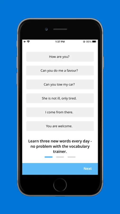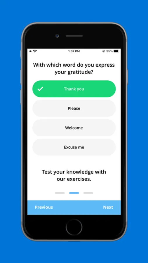 SaBeLoVu is the only app that offers courses tailored to your mother tongue. These courses build on your grammar and vocabulary skills. Audio examples and dialogues, recorded with real native speakers and not with automated computers, will soon allow you to speak safely