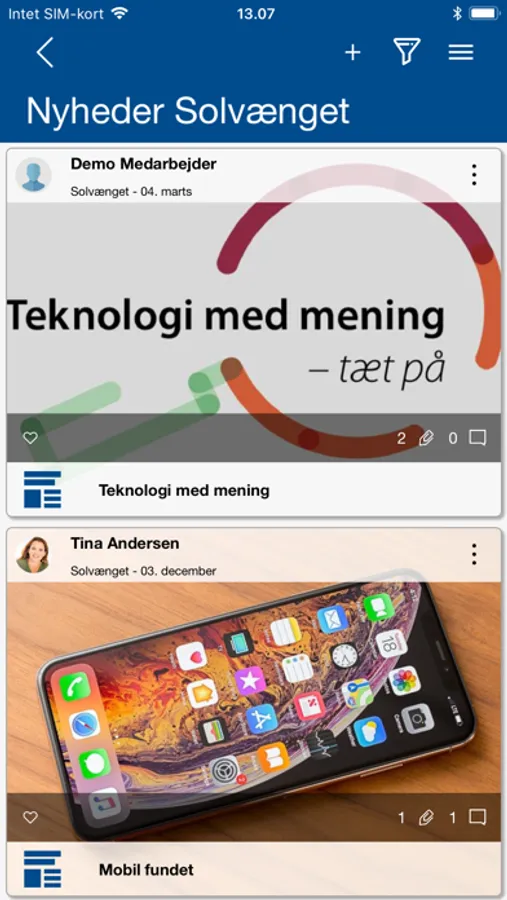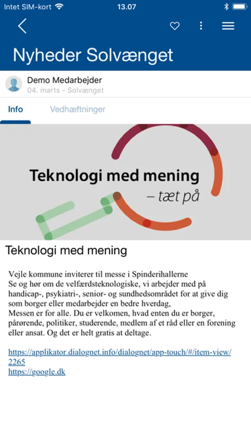 • Afhængig af brugerrettigheder kan alt information på platformen oprettes direkte fra appen. Det glæder alt fra nyheder, opslag om vagtbytte, mødeindkaldelser, tilmeldinger til møde, booking af diverse ting. Ligesom ”emne ejeren” kan vælge om folk skal have mulighed for at kommentere opslaget