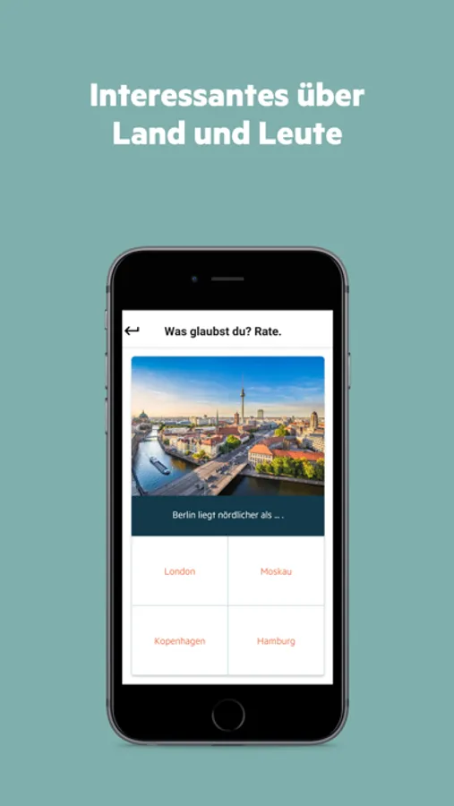 Wie feiern Deutsche den 31. Dezember? Warum ziehen so viele Menschen aus dem Ausland nach Berlin? Welche Biersorten trinken Deutsche, Österreicher und Schweizer? Mit der App lernst du mehr über Themen wie diese. Denn wir finden: Du solltest nicht nur einfach Deutsch lernen, sondern auch den Alltag und die Kultur der deutschsprachigen Länder verstehen. Dafür findest du in der App interessante Texte und lustige Quiz über das Leben in Deutschland, Österreich und der Schweiz.