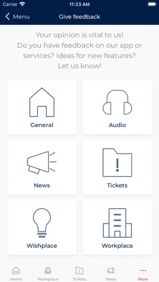 The app allows you to create incident reports and view important information and contact details about your location (e.g. emergency information, service hotlines or meal plans).