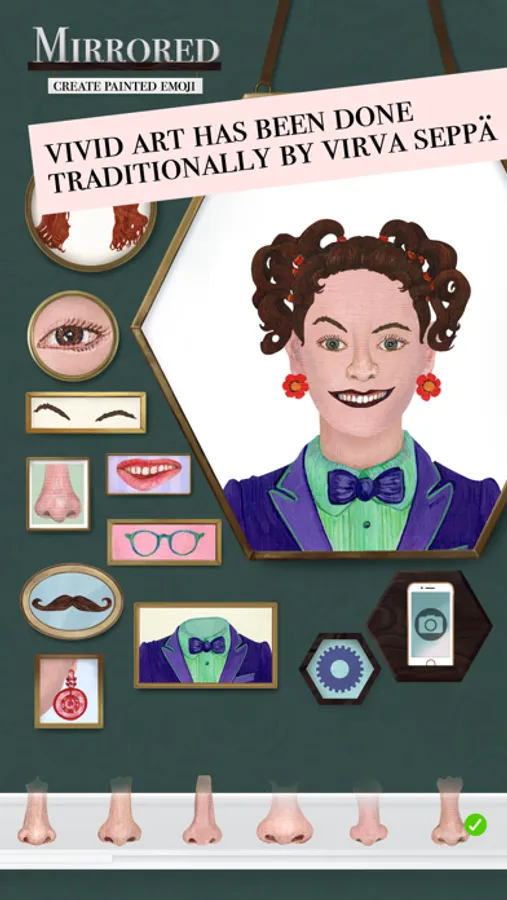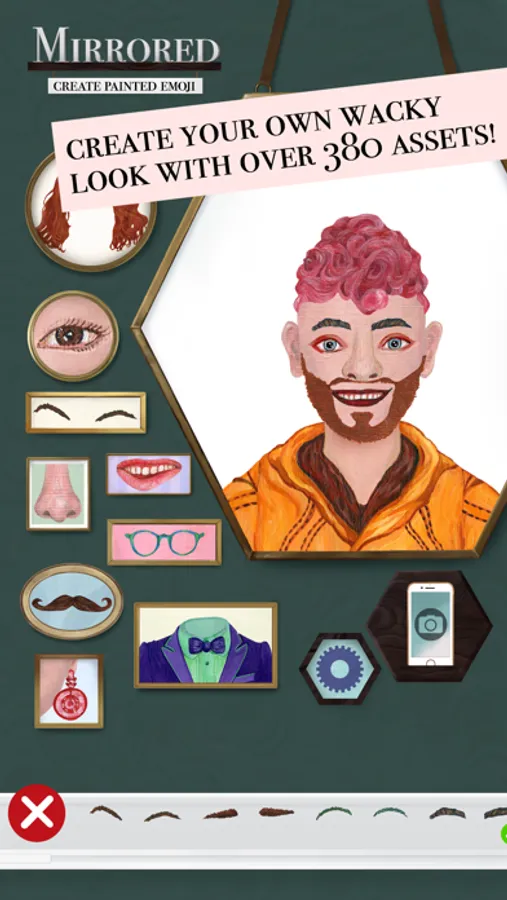 Design vivid faces with Mirrored: Create painted emoji. With over 380 assets, combinations are countless. A wide selection of options enables you to create different kinds of appearances and express various emotions.