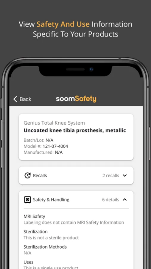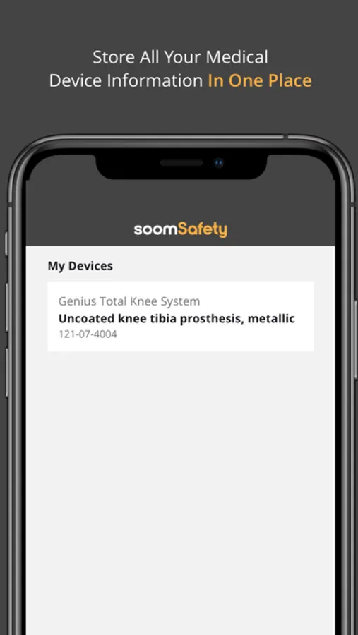 SoomSafety simplifies managing medical devices, providing quick access to critical information that can help ensure patient safety. The app also lets you group medical devices for easy organization and access and sends notifications if any stored medical device is ever recalled.