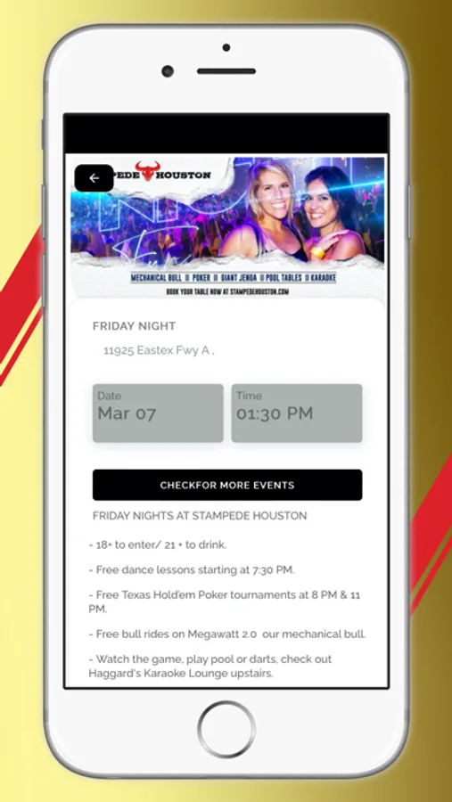 Stampede Houston is your Honky Tonk Heaven! We have the biggest names in country music playing on our stage throughout the year! Don’t forget about our giant, Texas-sized dance floor for all your two-stepping needs! And if you need a little refresher on how to dance, come in on Friday’s for our free dance lessons!