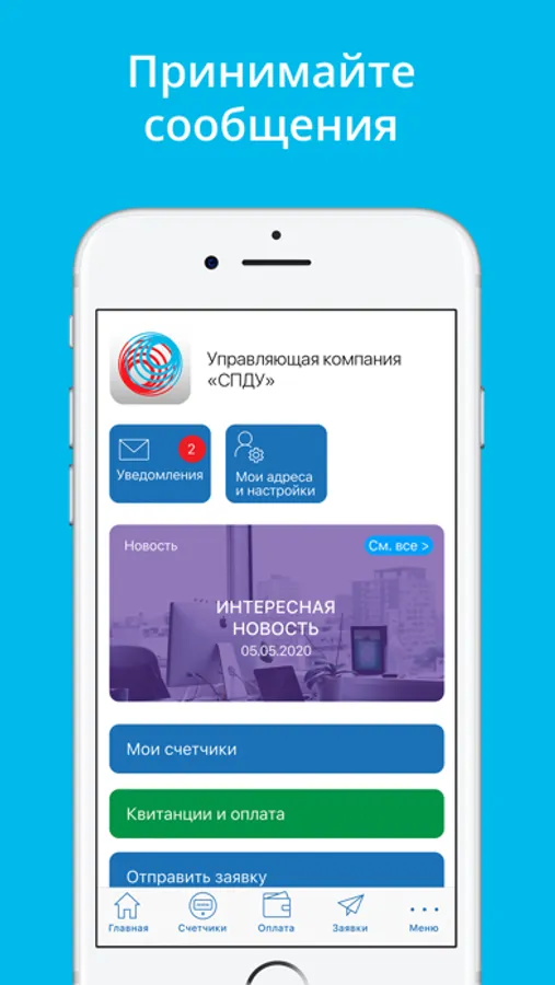 Отправляйте заявки с фотографиями, показания счетчиков, получайте важную информацию от управляющей компании!