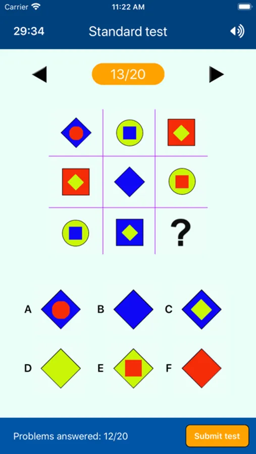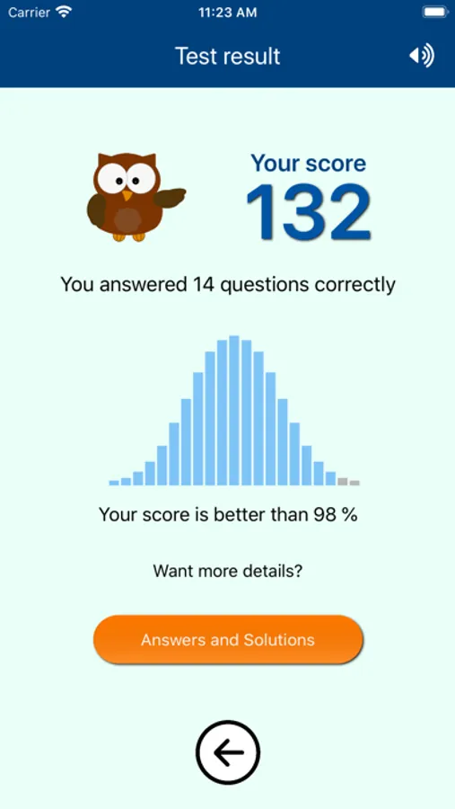 Tests consists of 30 questions with increasing difficulty. You get your result directly after finishing the test.