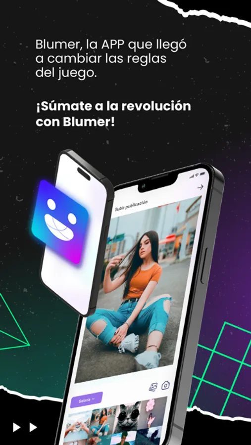 Blumer es una red social donde puedes subir tus fotos y videos. Descubre divertidos videos, fotos impresionantes y forma parte de esta comunidad virtual con grabaciones, videos de tu día a día, cumpliendo retos diarios o reaccionando a los mejores memes y videos. Comparte tu vida y escoge entre docenas de efectos mágicos y filtros.