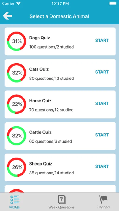 Test and improve your information answering the questions and learn new knowledge about domesticated animals by this app.